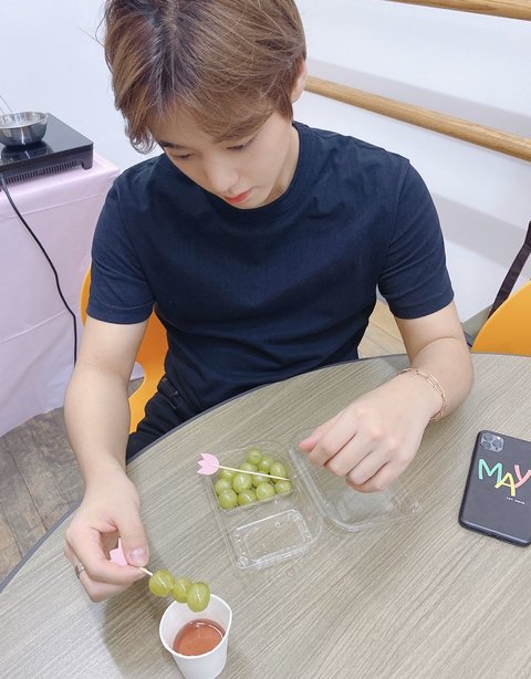오늘 지훈이는 V LIVE를 마치고 남은 청포도 탕후루 키트도 만들었다