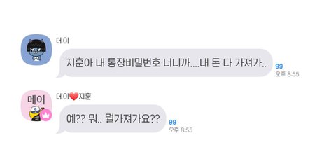메이: 지훈아 내 통장 비밀번호 너니까 내 돈 다 가져가...