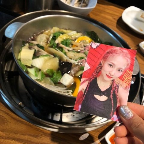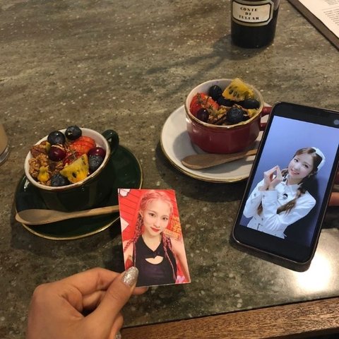 자기가 자기 포카 들고 밥먹을 때 사진 찍음