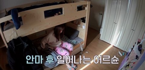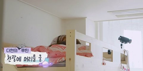 다현이는 일어났는데 내려오다가 천장에 머리 박고