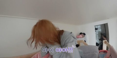 ㅋㅋㅋㅋㅋㅋㅋㅋㅋㅋㅋㅋㅋㅋ윤경인가? 2층에서 자는 멤버들은 다 일어나면서 머리 박고 내려옴ㅋㅋㅋ