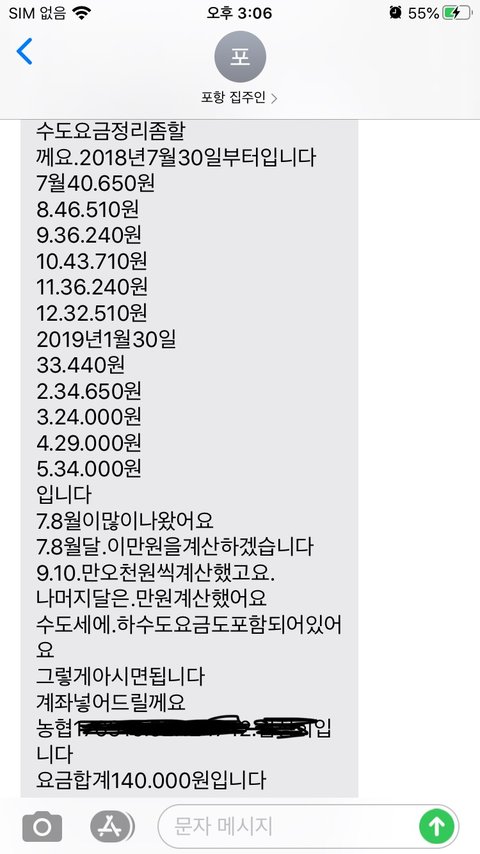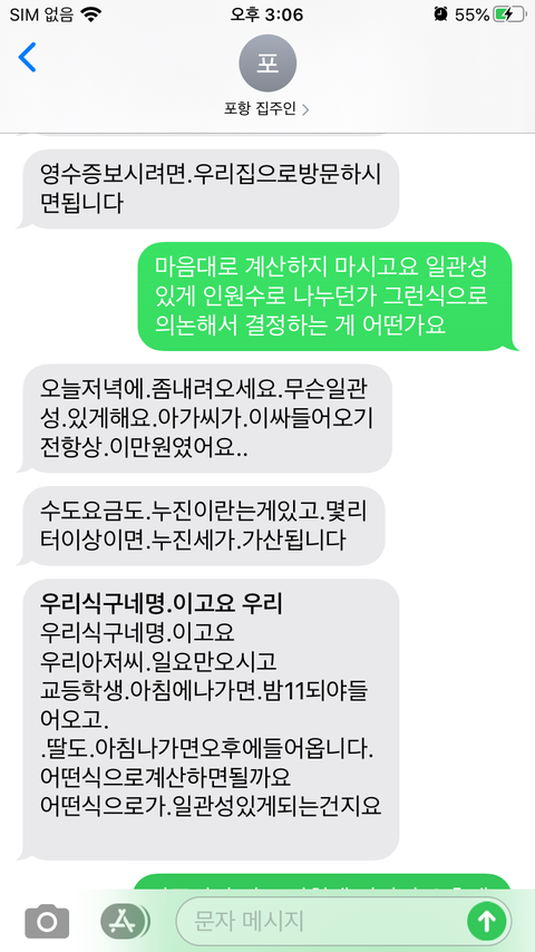 수도요금을 주인 마음대로 내라고 하길래 n/1을 권유했더니 그렇게는 못하겠다고 하더군요.
