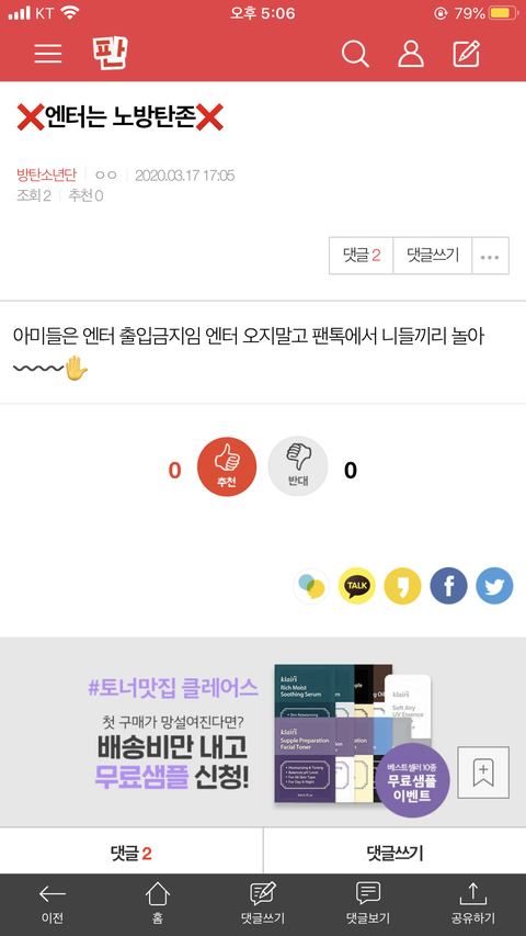 ❌엔터는 노방탄존❌
