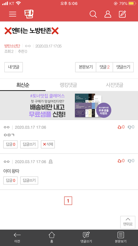 밑 엔터는 ㄴㅂㅌㅈ 글 댓 여기서