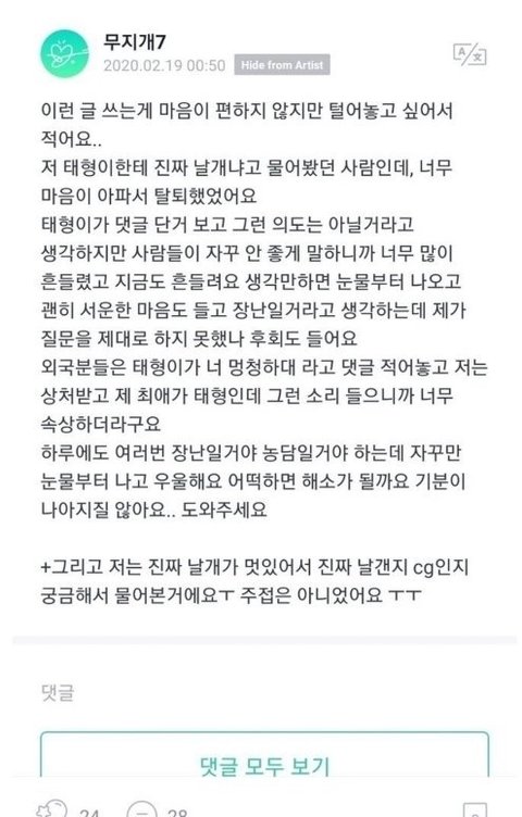 뷔 한테 상처 받은 팬