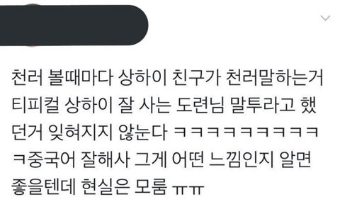 런쥔이는 사투리??처럼 동북 사람들 말투 쎄다고 했거든 중국어를 잘 몰라서 못 느꼈는데 천러 중국어 들으니까 확 느껴진다ㅋㅋㅋㅋ