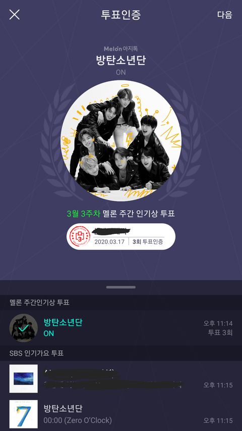 차트 땜시 온 득표율 저번주보다 더 좋아야해ㅜ