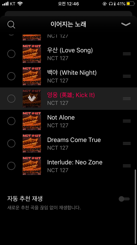 저 아래 자동 추천 재생 눌러야해..?