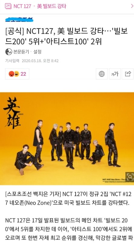 빌보드200은 이미 알고있었지만 아티스트 100 순위는 새로 뜬거같고 빌보드 3대 메인차트고 우리칠 자체 신기록이랭
