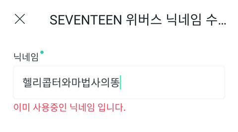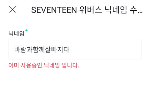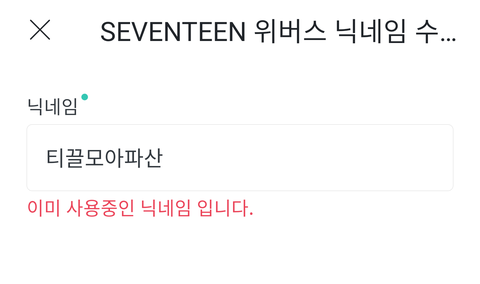 세븐틴 위버스 닉네임 다 사용중이야 ㅠㅠㅠ