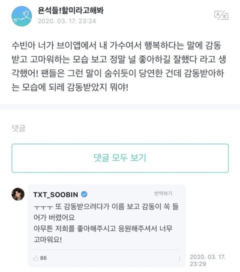 하지만 이런 수빈이의 감동은 얼마뒤 위버스에 올라온 한 모아의 글로 인해 깨지게 된다..ㅋㅋㅋㅋㅋ
