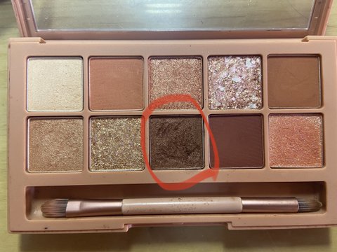 같은 섀도우 팔레트 바로 옆에 있는 좀 연하고 분홍색인 섀도우로 눈 아래를 칠해줘!! 난 좀 넓게 칠해!!