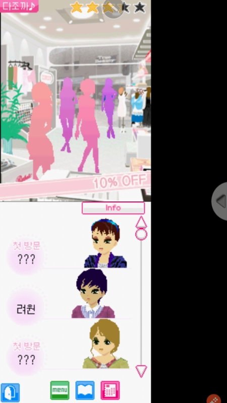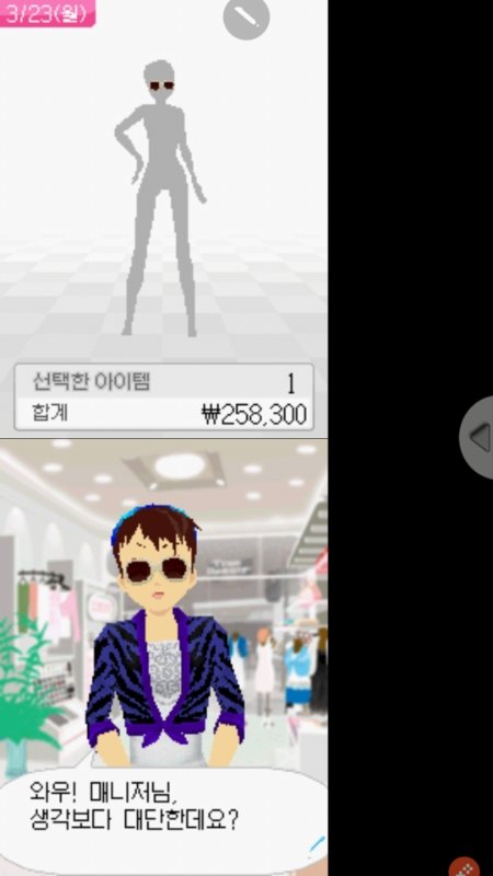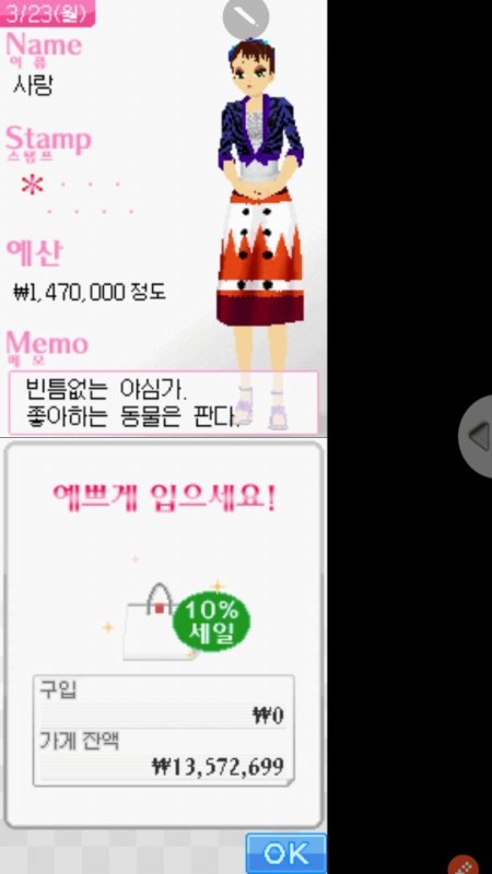 초딩때 개마니했던 닌텐도DS게임인데 요샌 폰으로도 할수있어서 받아서 하는중ㅜㅜ 좀 된 게임이라 손님들 옷이 촌스럽긴 하면서도 괜찮은데 요새 입는? 그런 이쁜옷들도 이쁜옷들도 꽤 많다 존잼임!