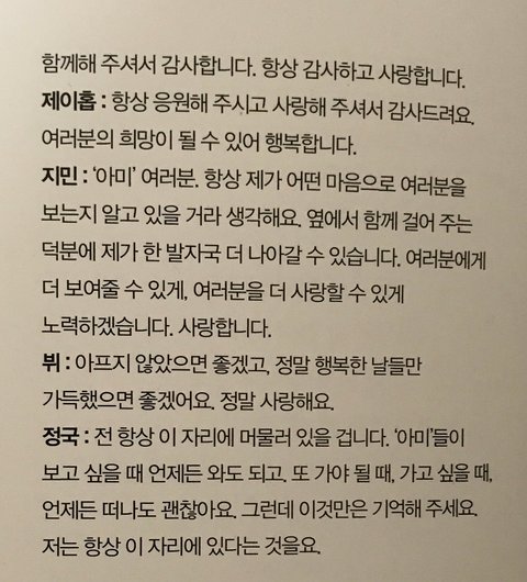 탄이들의 진심을 잊지 않아줬으면 좋겠어서 이 글을 써봐