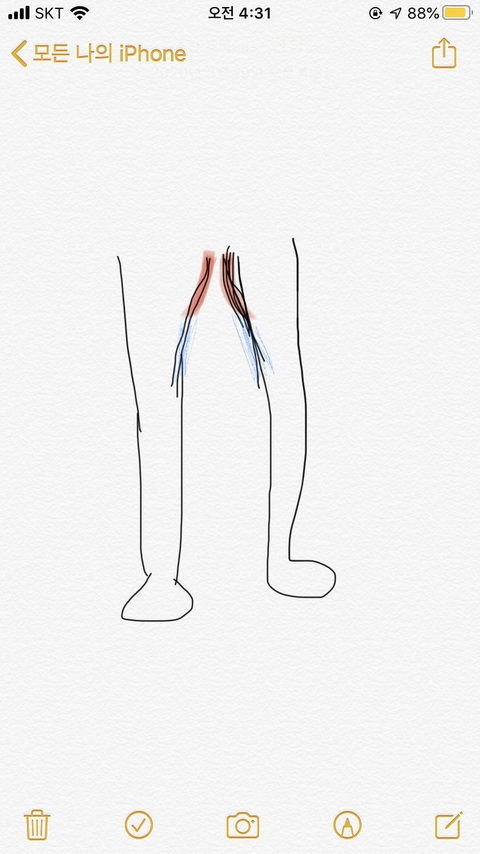 허벅지 안쪽살 빠지는 홈트랑 그런거 다해봤는데 파랑색으로 터치한 부분만 빠지고 빨간부분은 안빠지는데 어떡함? 저건 군살이라 내 전신살을 빼야하는선가........??????? ㅠㅠ