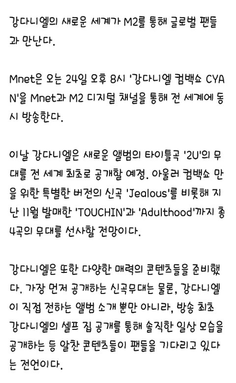 강다니엘 컴백쇼 CYAN, M2로 전 세계 팬 만난다