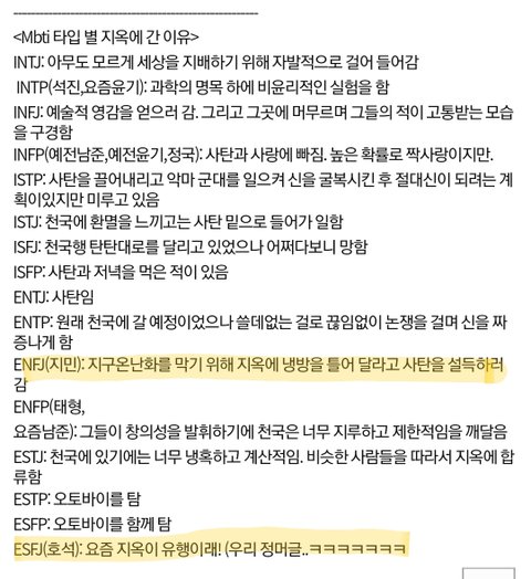 <Mbti 타입 별 지옥에 간 이유>