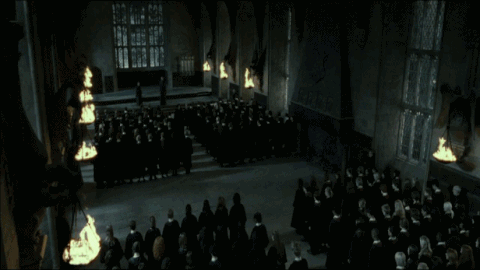 해리포터가 호그와트에 들어왔다는 소문에 다들 강당에 집합시킴