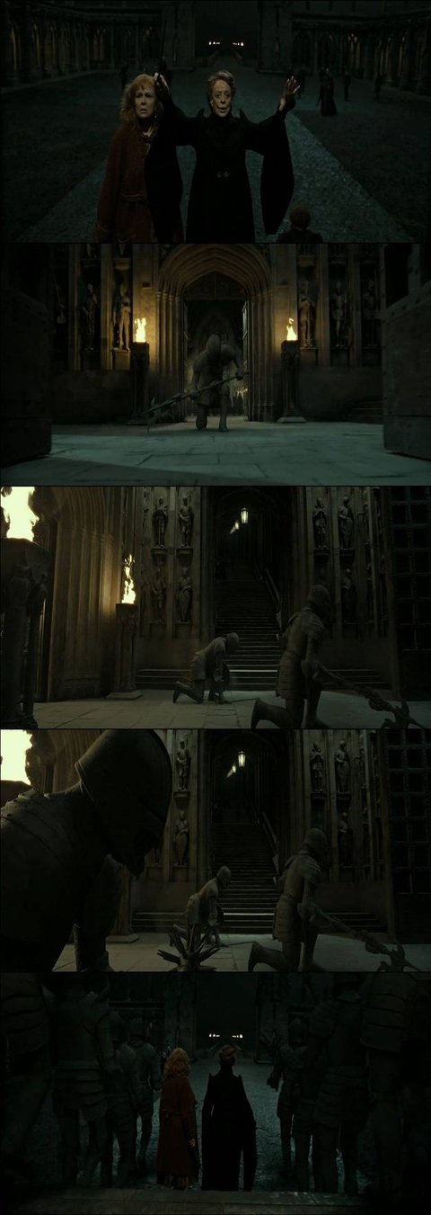볼드모트가 호그와트를 공격하려하자 주문으로 호위기사 불러냄