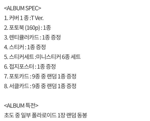 T버전 상세정보 (폴라로이드 랜덤동봉)