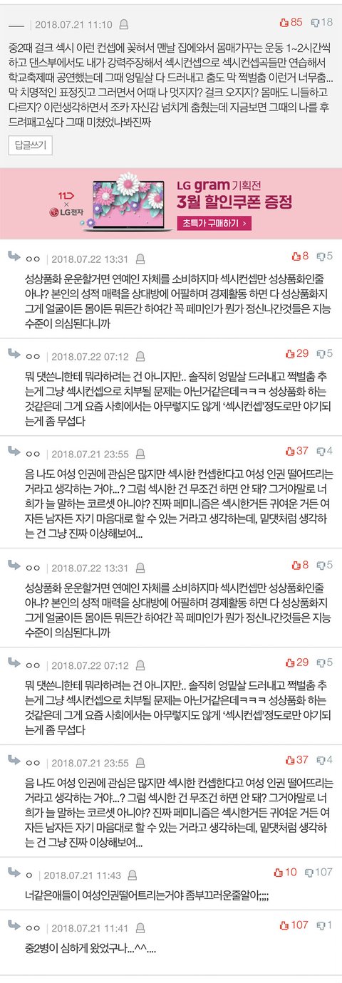 중학생이 자발적으로 섹시댄스를 추는게 여성인권과 관련있고 성상품화와 관련있다고 생각함? 아니면 다른 이유로 봐야된다고 생각함?