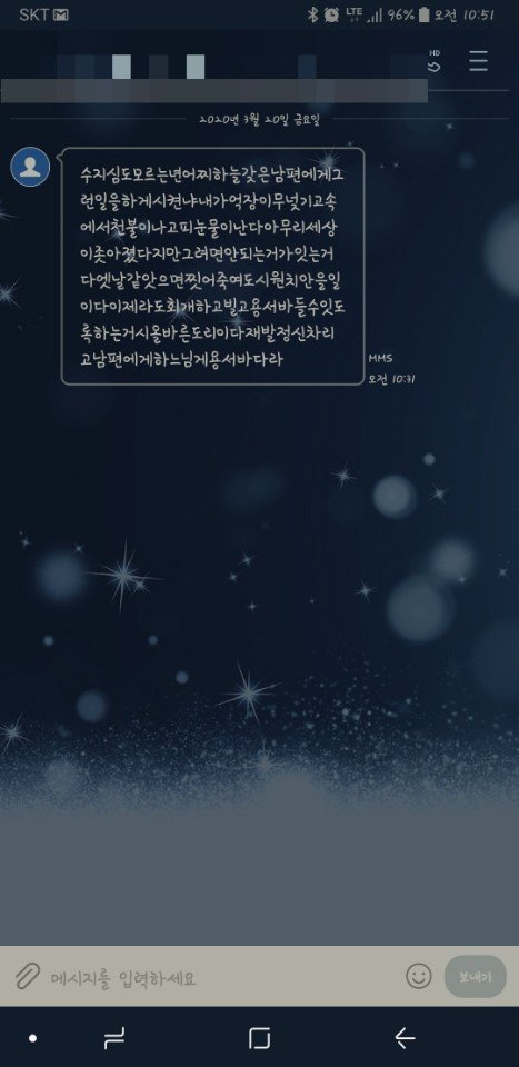 그러더니 좀 전에 시어머니께 문자가 왔어요..