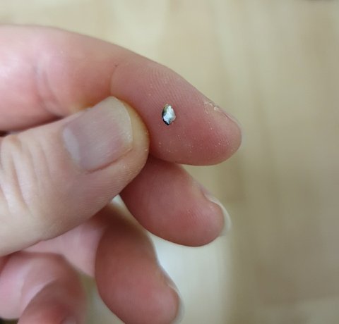 손으로 하나씩 먹이다 유리조각을 발견햇습니다