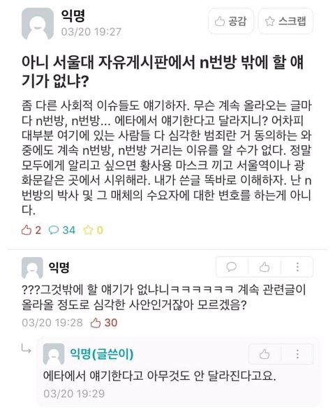 N번방에 대한 서울대 에타 반응 봄?