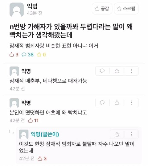 한남들은 정상인척 우리 사이에 숨어있다