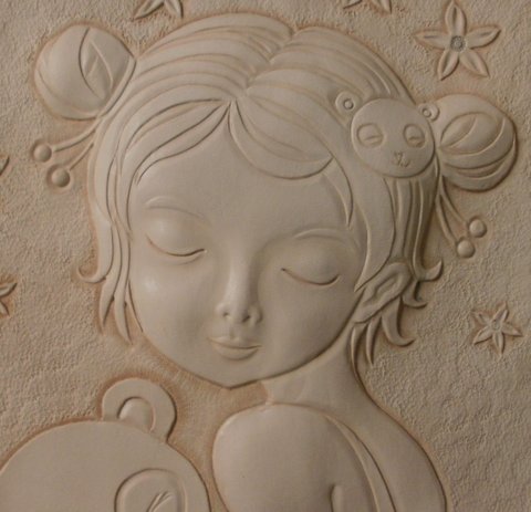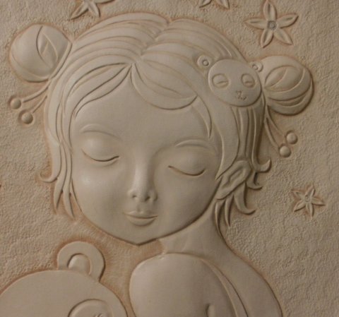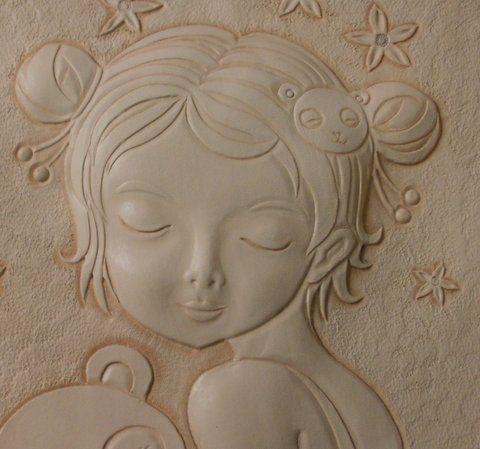 가죽에 인물(아이)를 3D카빙하였습니다.(마디샤)