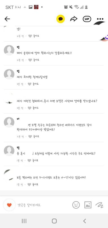 어느날은 저에게 sns를 하냐고 물어봐서 혹시 인스타나 그런데 올리는 것도 부탁하시려나? 하고 일단은 캡본으로 보내드렸습니다.