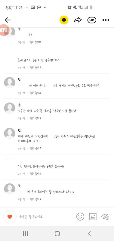 그래서 일단 깔고 여러 대화를 하다가 옷핏이 궁금하다고 저에게 반팔 반바지를 입고 사진을 찍어달라고 했습니다. 저는 알겠다고 한 뒤에 사진을 보냈고 그뒤로도 계속 3월은 연습기간 같은거니까 핏이 제일 중요하다며 점점 짧은 옷을 입어달라고 요구 했습니다. 저는 좀 이상하긴 했지만 또 그 사진들을 보냈습니다.