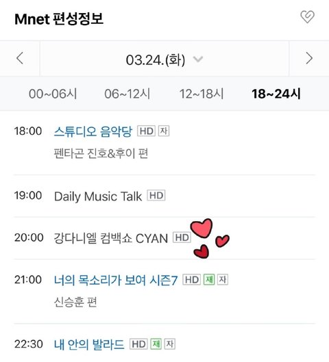 엠넷 강다니엘 컴백쇼 편성표뜬거 봤오?
