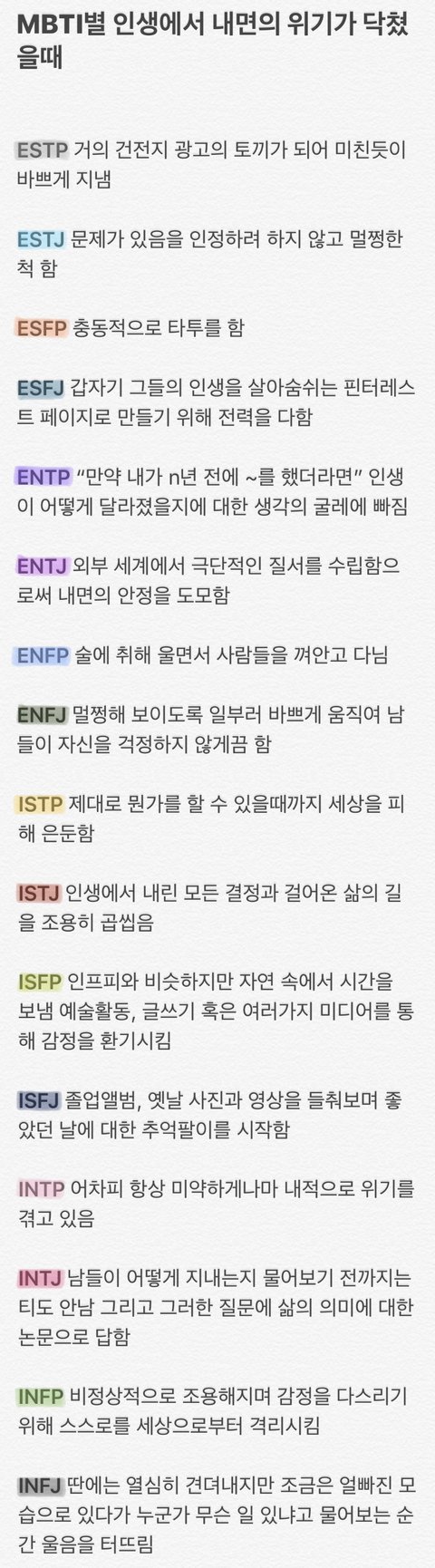 mbti별 인생에서 내면의 위기가 닥쳤을때