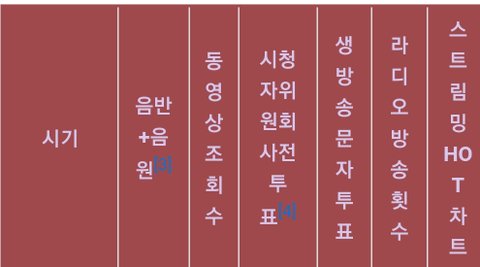 음반10% 음원50%라 뮤뱅보단 가능성 낮지만 바이브도 스트리밍 핫차트 1000점 바이브 주간순위대로 주는 거 말곤 5000점 만점 음원에서도 가중치 있는지 모르겠음(1등 1000점 2등 750점 3등 500점)