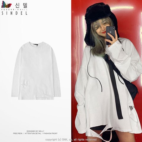 먼저 이런 찢어진 슬리브 티를 입어야돼 엉덩이는 다 덮는 기장? 색은 튀는거도 많이 입음