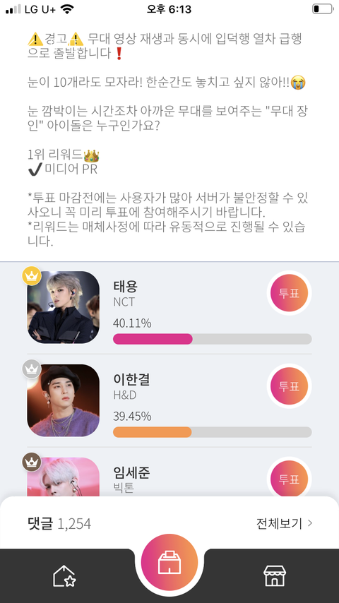 그럼 나 이거 투표해도 되나? 혹시 별 모아놓은 준희들 있으면 투표하자 맨날 1,2위 엎치락뒤치락 하는데 혹시 더쇼 투표해야 될까봐 모른척 했다 미안해 태용아ㅠㅠ