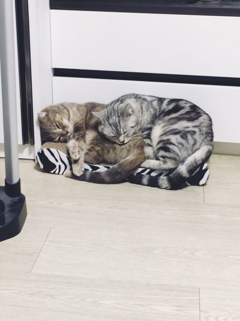 우리는 같이 자는 것도 무지 좋아한다냥!