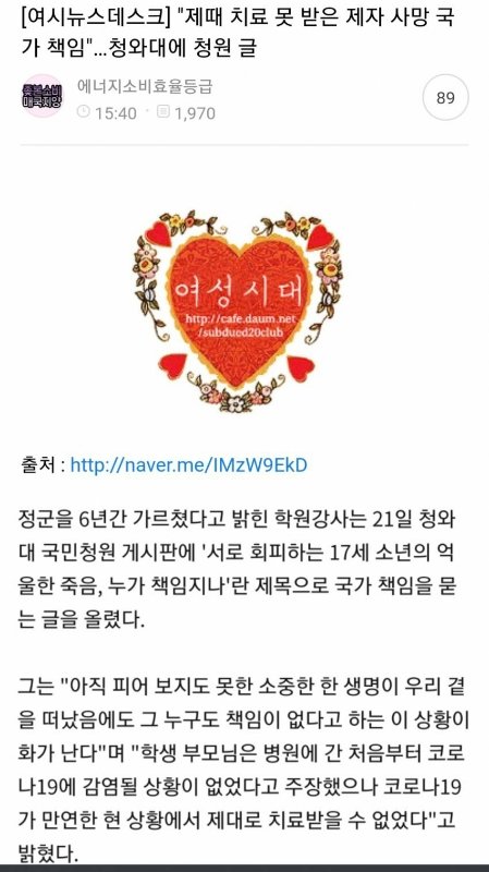 대구 17세 학원 강사 청원글... 여성시대 반응