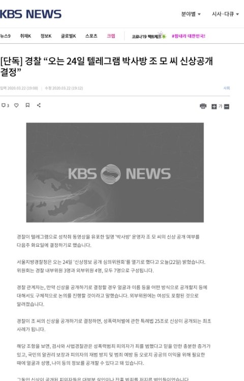 kbs에서 n번방 신상공개한다고 뉴스 올라왔네요