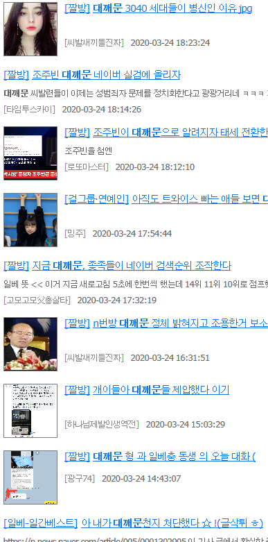 일베 홈에 '대깨문' 도배되있음 수준들하곤 ㅉ