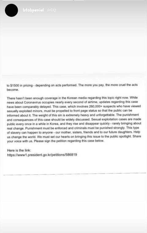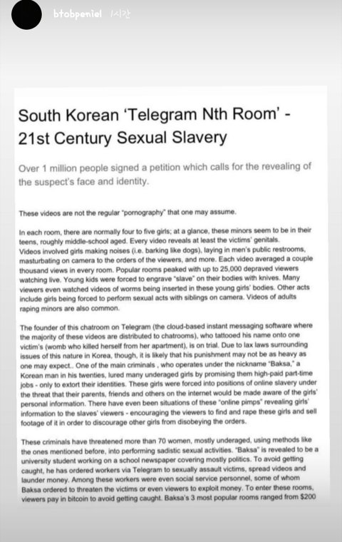 비투비 프니엘도 n번방 사건 설명이랑 청원주소 담긴 영어판 글 올렸어