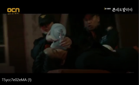 오현재 형사를 찌르려 다가 서는 순간 광수1팀 황하영 팀장(배우 진서연)이 대신 찔린다.