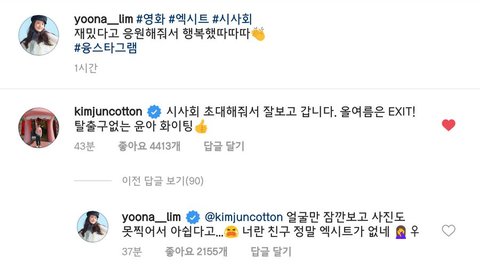평소에 둘이 댓글로 나누던 대화들