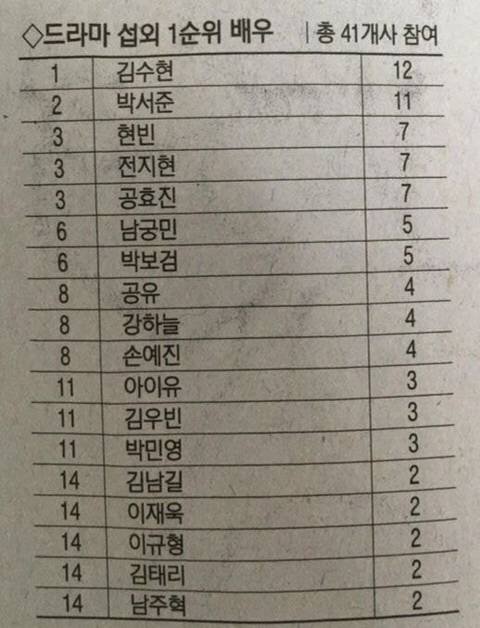 관계자들이 참여한 드라마 섭외 선호도 조사에서