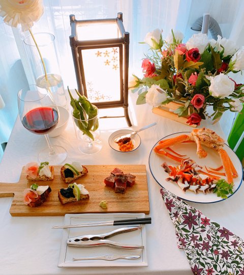 햄치즈, 캐비어 카나페& 대게, 갑오징어 숙회