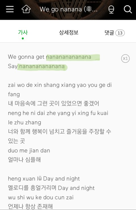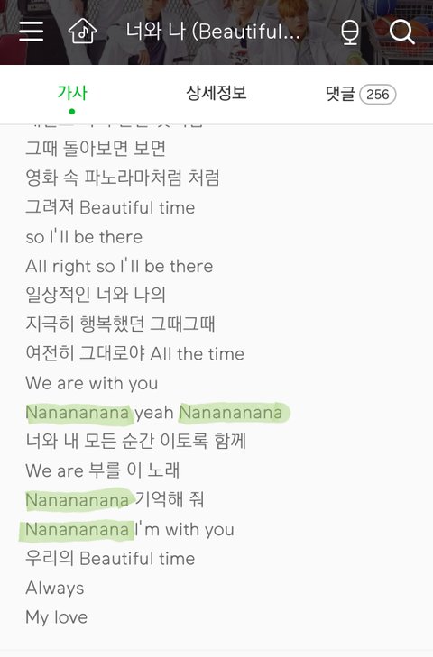 엔시티 노래 다 들어본 사람들은 알거야 엔시티 노래에 "나나나나"가 많이 들리는 것을...ㅋㅋ
