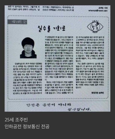 이름 조주빈 인하공전전문대졸업 정보통신과 14학번 학보사 편집국장출신임 나이 만25살