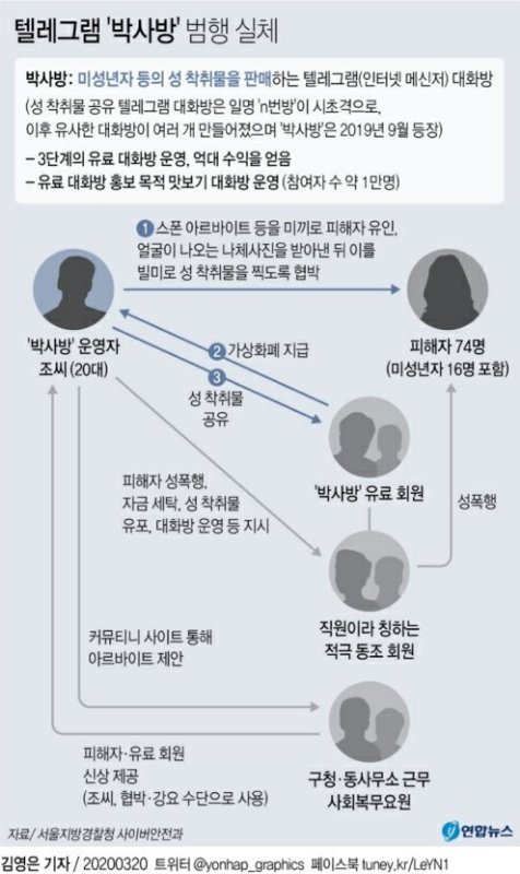 조주빈 = 이번에 잡힌 박사(클론박사인지 진짜 박사인지는 정확히모름. 그만큼 클론들이 많아서 의견분분. 다만 클론박사여도 방관자 이상의 짓을 주도적으로 한건맞음)