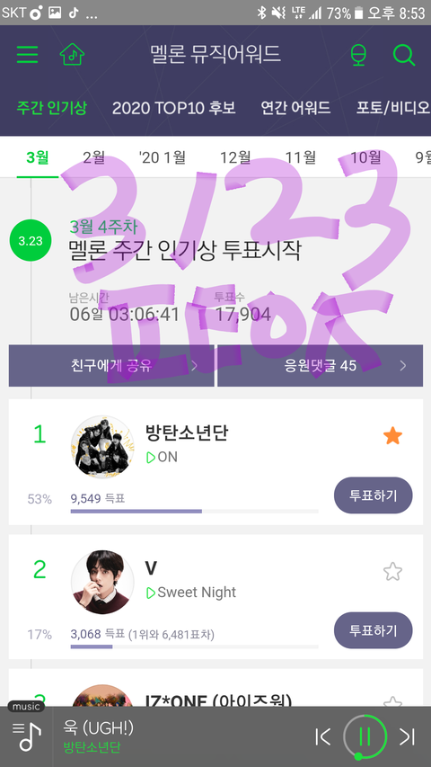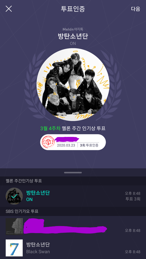 차트 순위땜시ㅜ ON 이번주 득표률 15만표 이상 이여야함